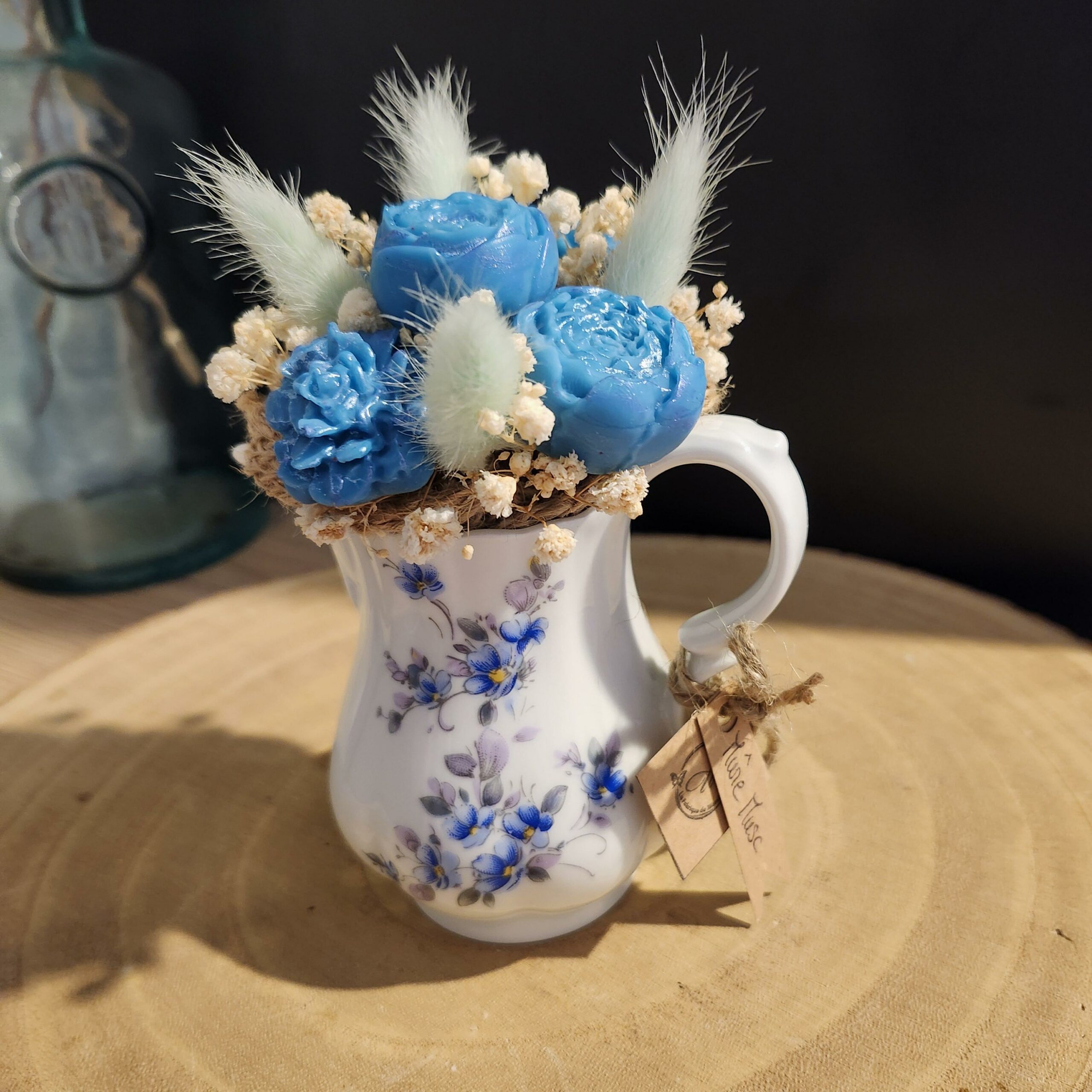 Petit bouquet Eternel dans un petit pichet ancien.